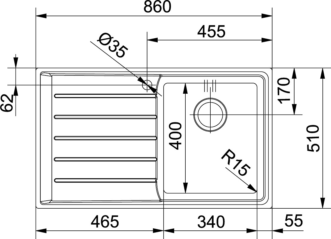 Franke Neptune Plus - Inox Evier NPX 611/2, 860x510 mm, droite (101.0068.360)