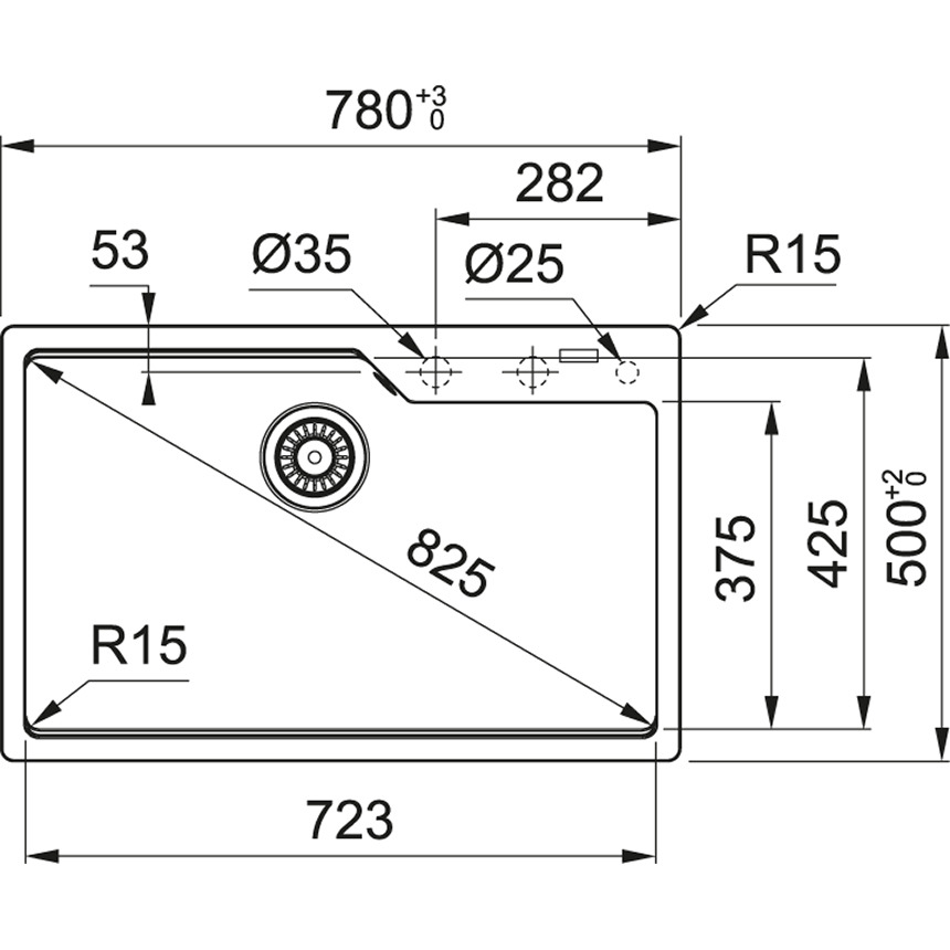 - Dimensions du bac de l'évier: 723 x 425 x 230 mm