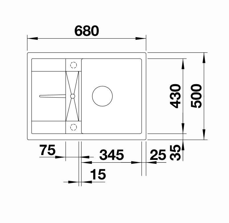 • Evier : 680 x 500 mm