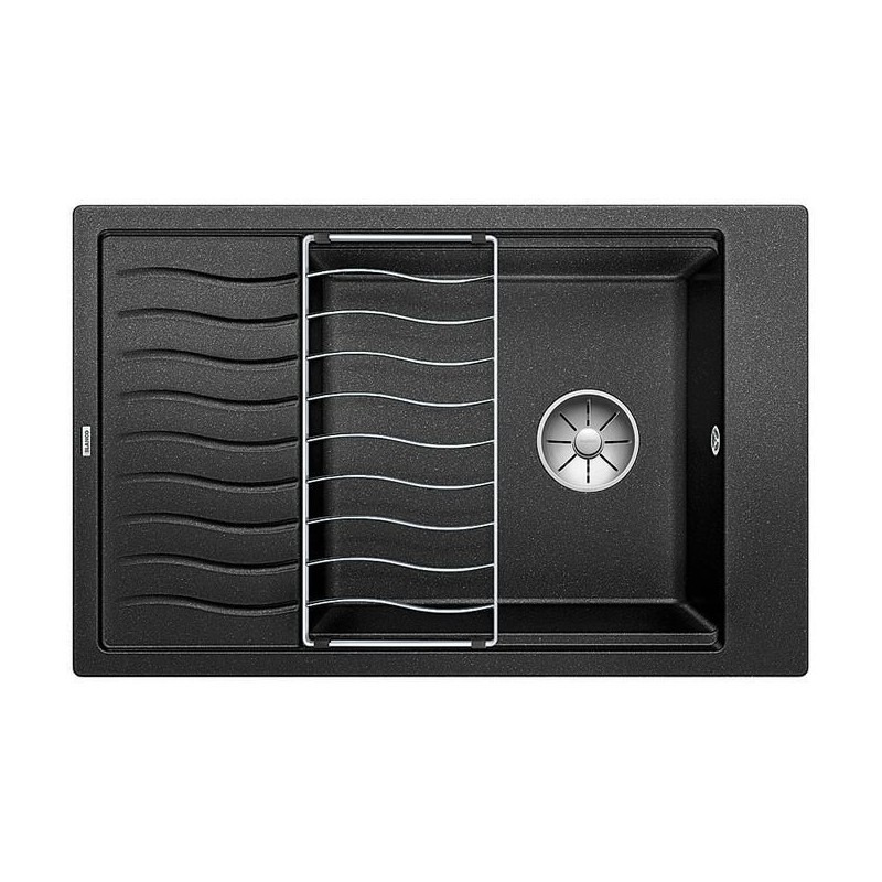 Blanco Evier ELON XL 6 S PuraDur en Silgranit 78x50cm cuve XL réversible + Egouttoir inox, Noir (525883)