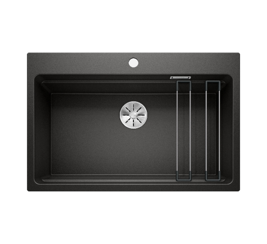 Blanco Evier ETAGON 8 PuraDur en Silgranit 78x51cm avec cuve à étages + 2 rails en inox inclus, Noir (525893)
