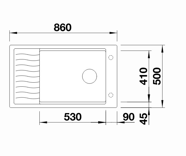 Caractéristiques de l'Evier Elon XL 8 S PuraDur en Silgranit avec vidage manuel 86x50cm, Noir (525886) :