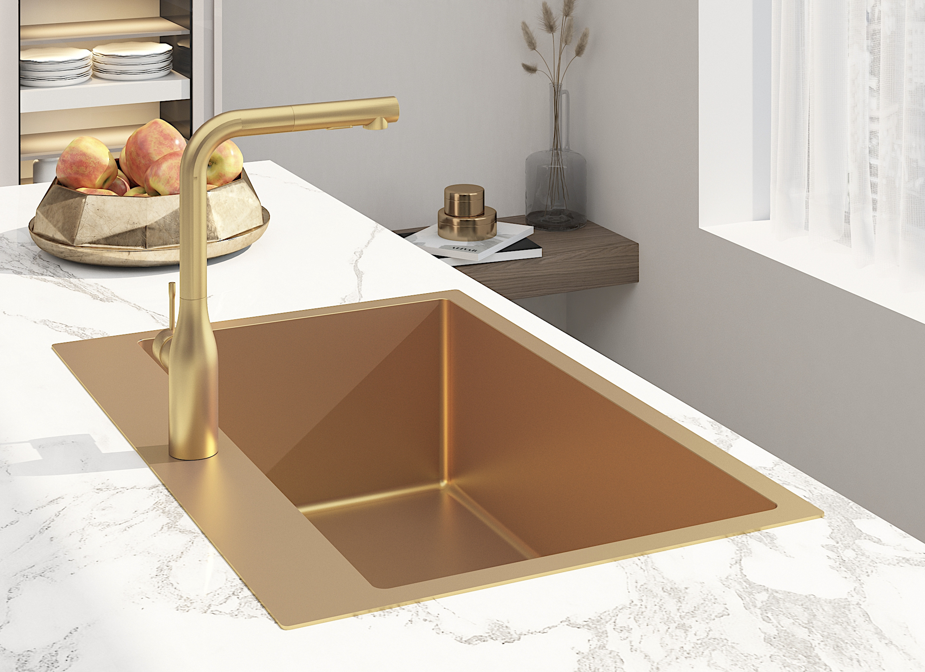 Evier pour cuisine en inox doré, élégant et fonctionnel