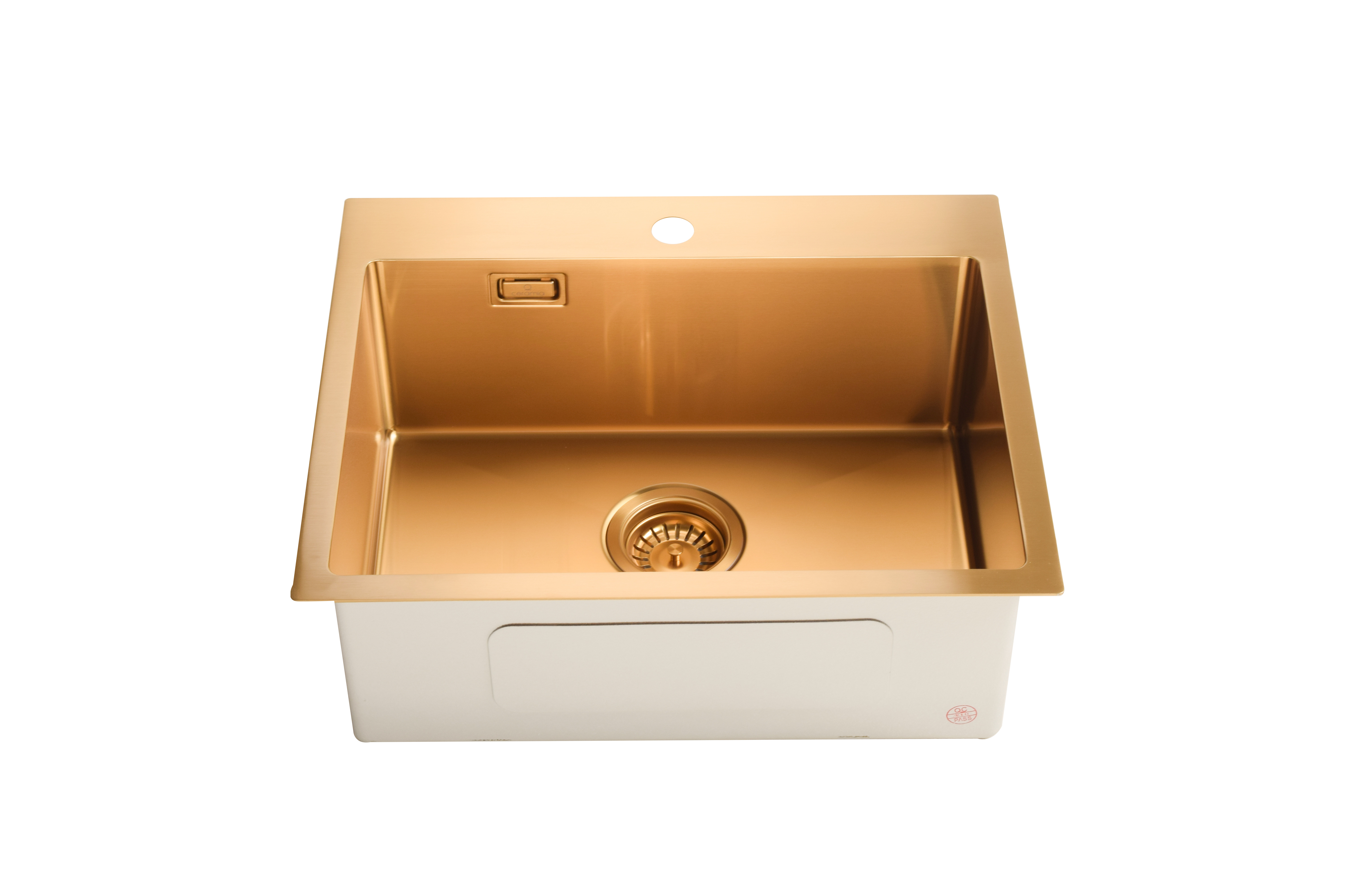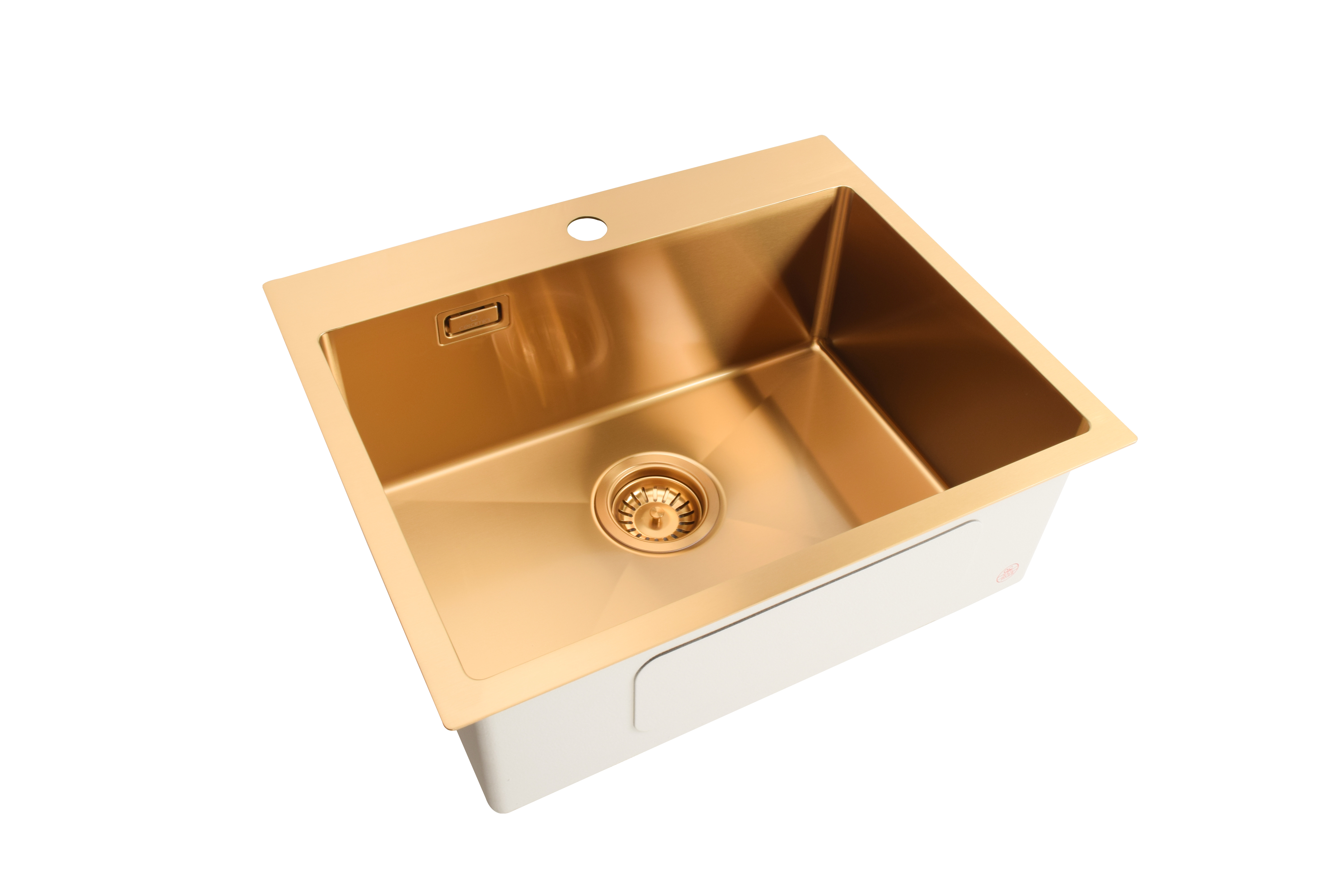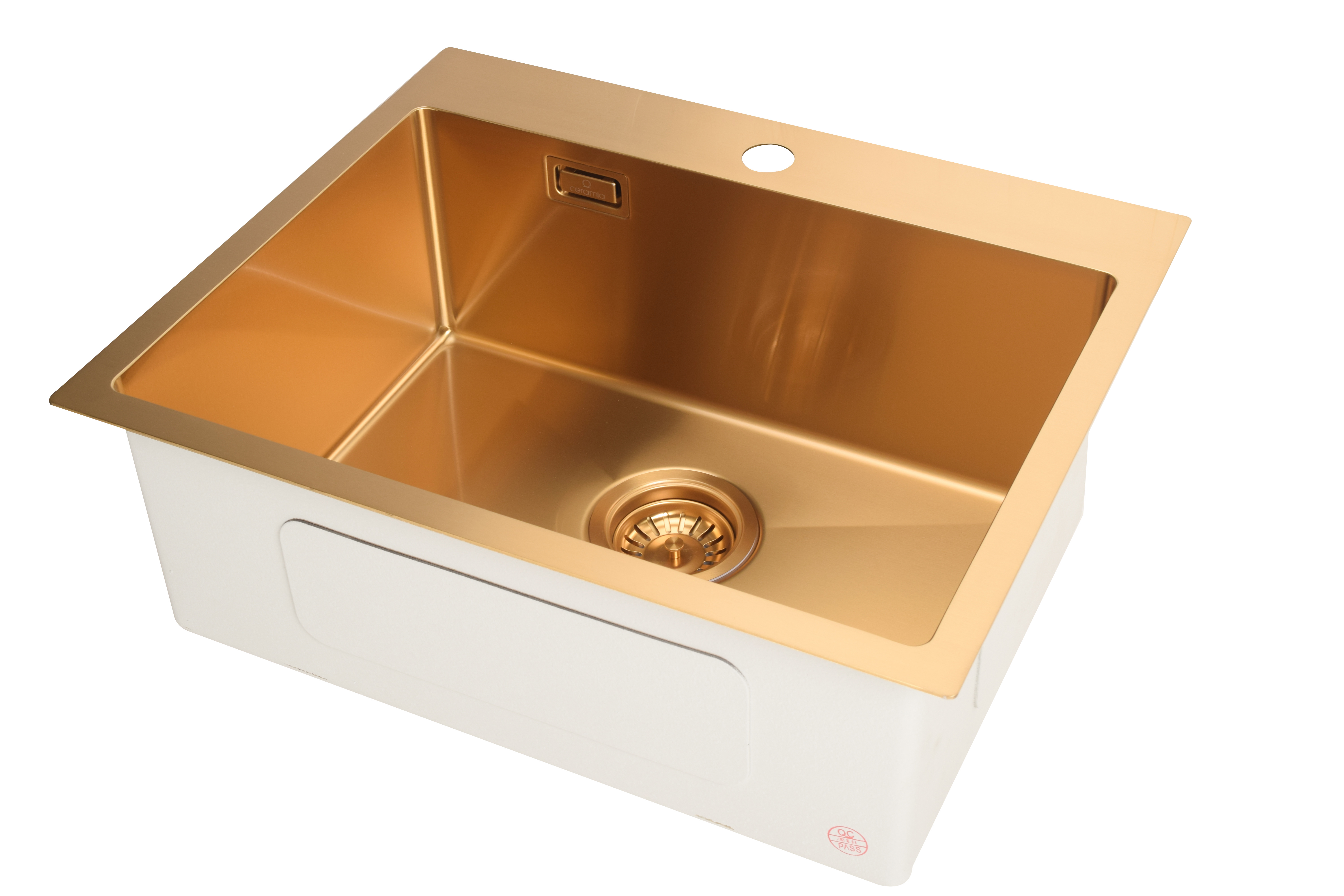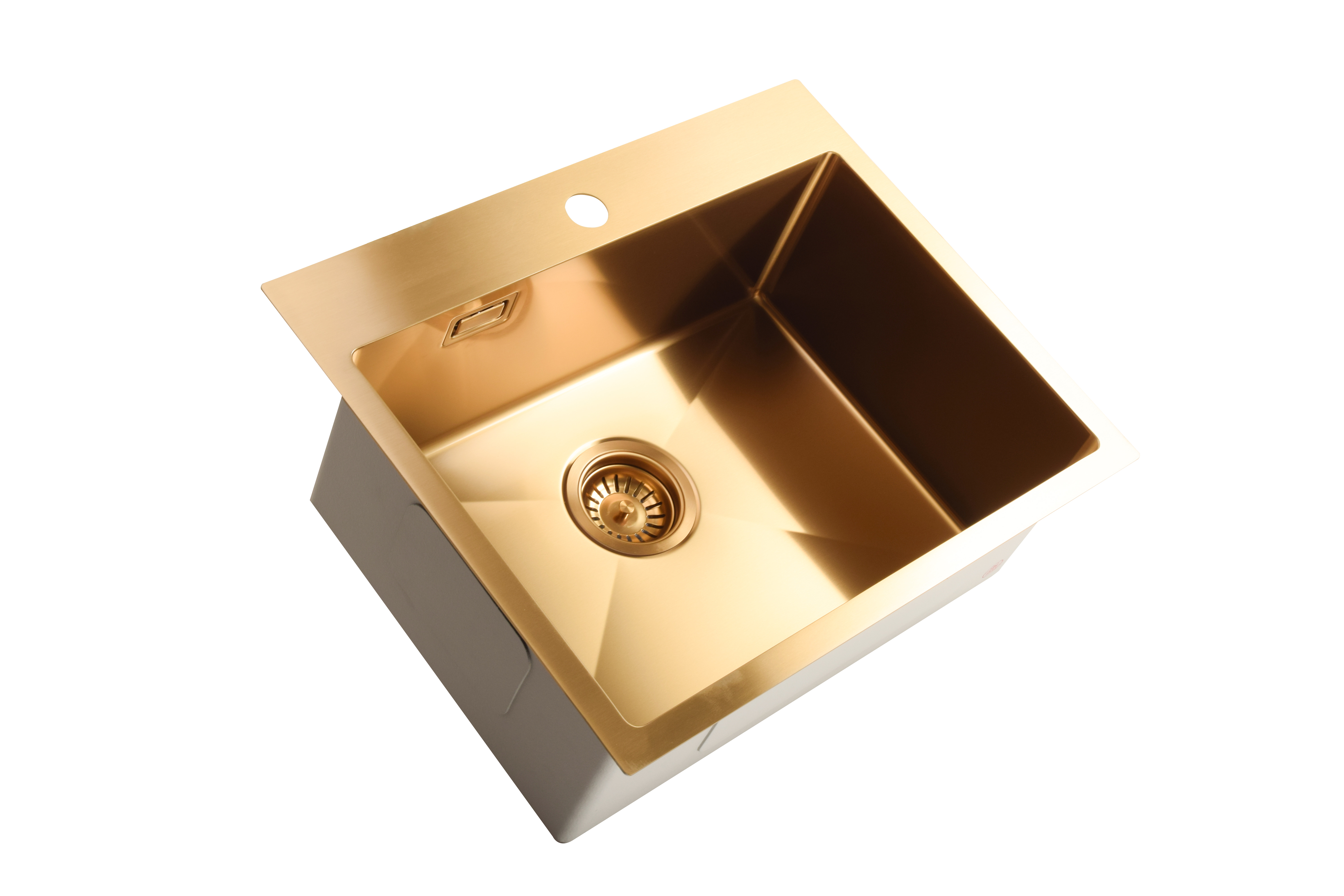 Timeless Évier de cuisine encastrable inox 304, 1 bac , 55x45x21 cm, Or brossé PVD
