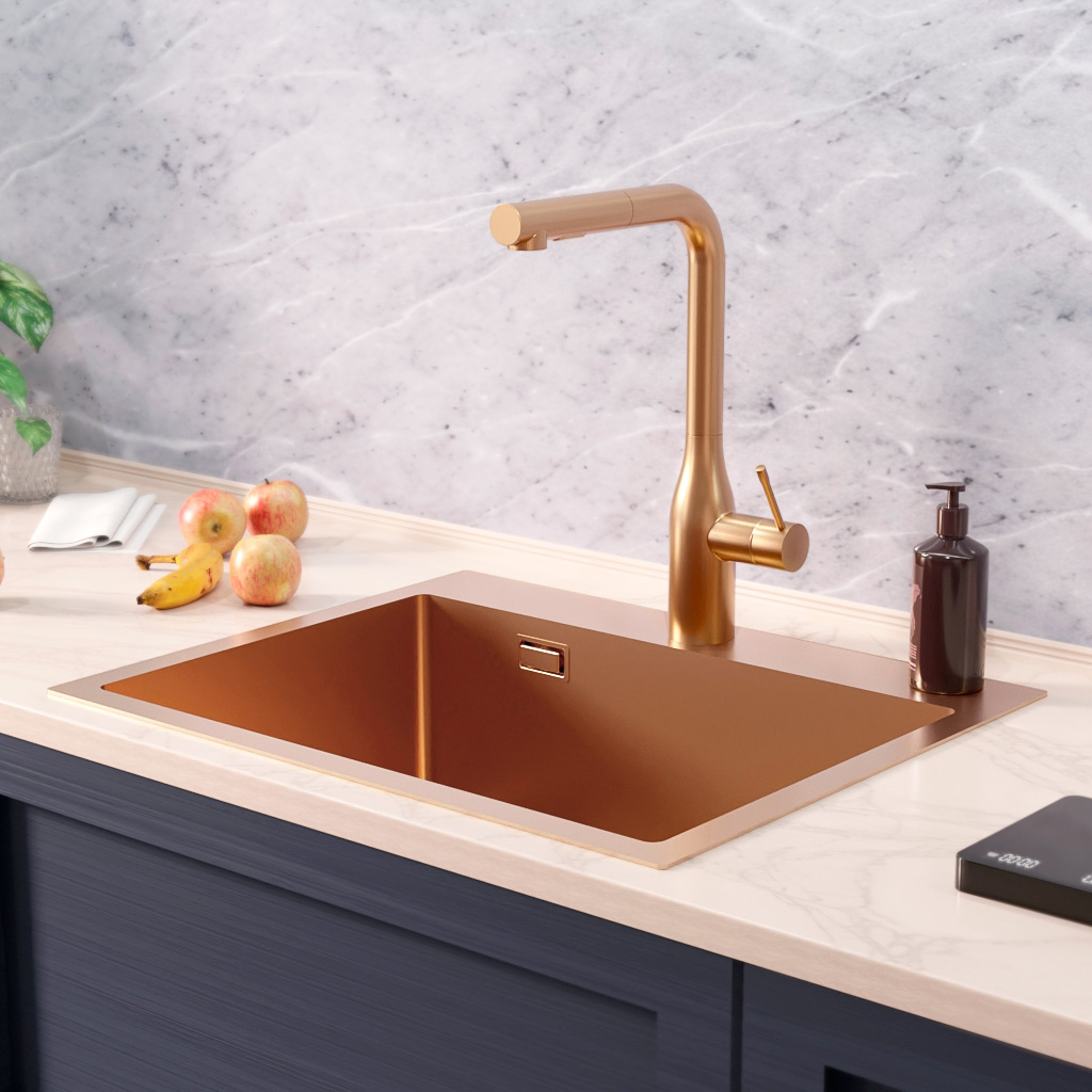 Ceramia Timeless Évier de cuisine encastrable inox 304, 1 bac, 55x45x21 cm, Cuivre brossé PVD
