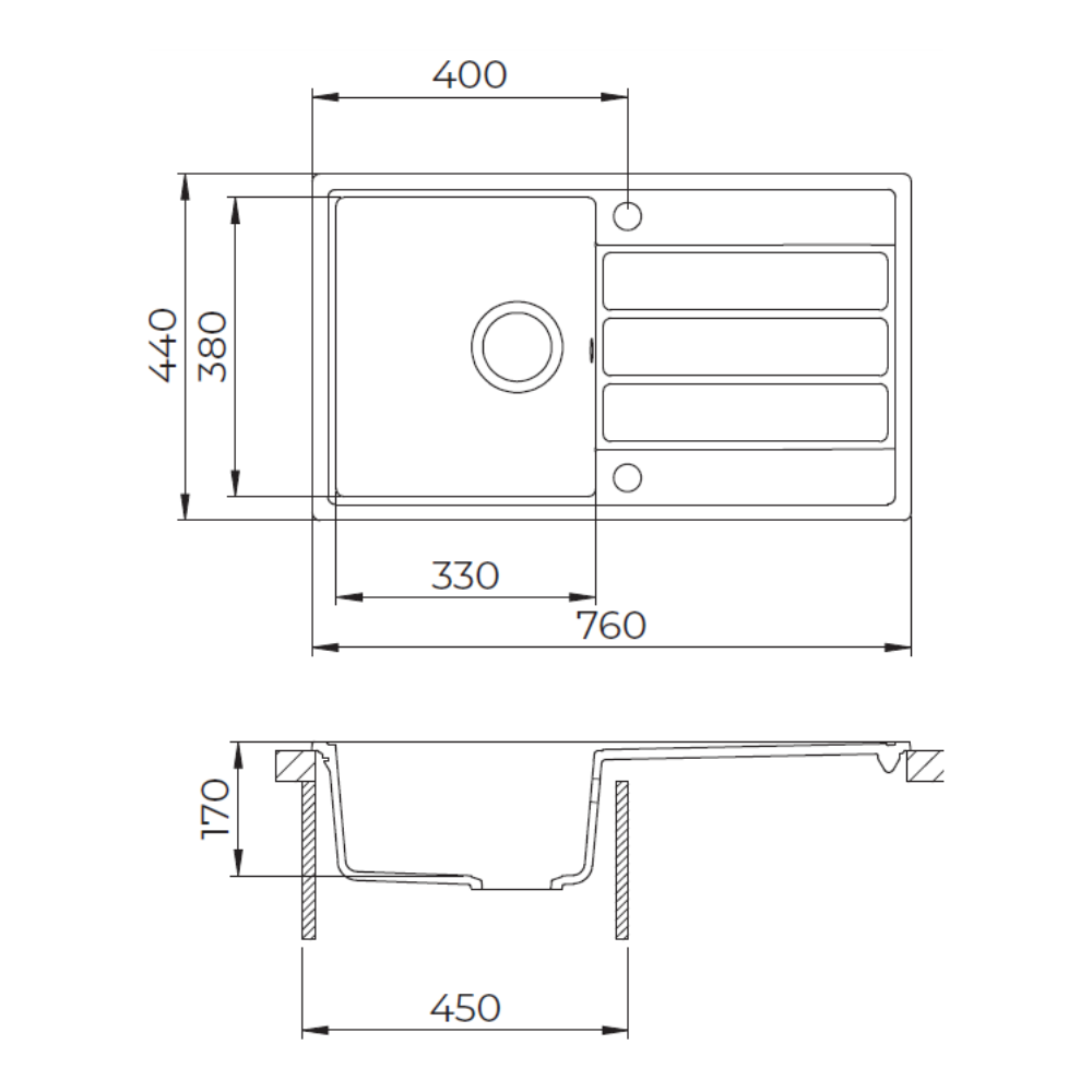 Caractéristiques de l'Evier 76x44 cm avec égouttoir réversible en Granite, à encastrer, Noir (SATSINKGE3B) :