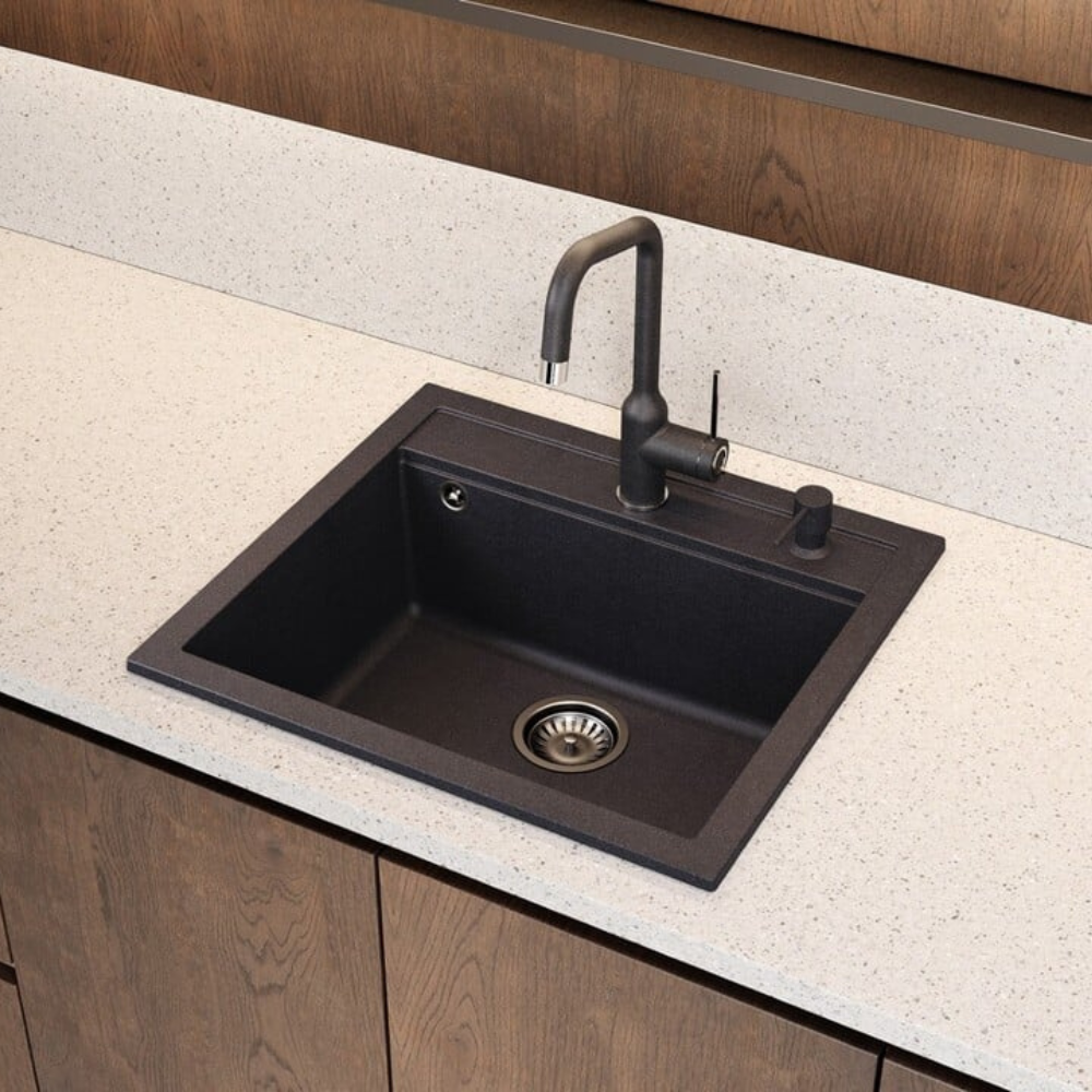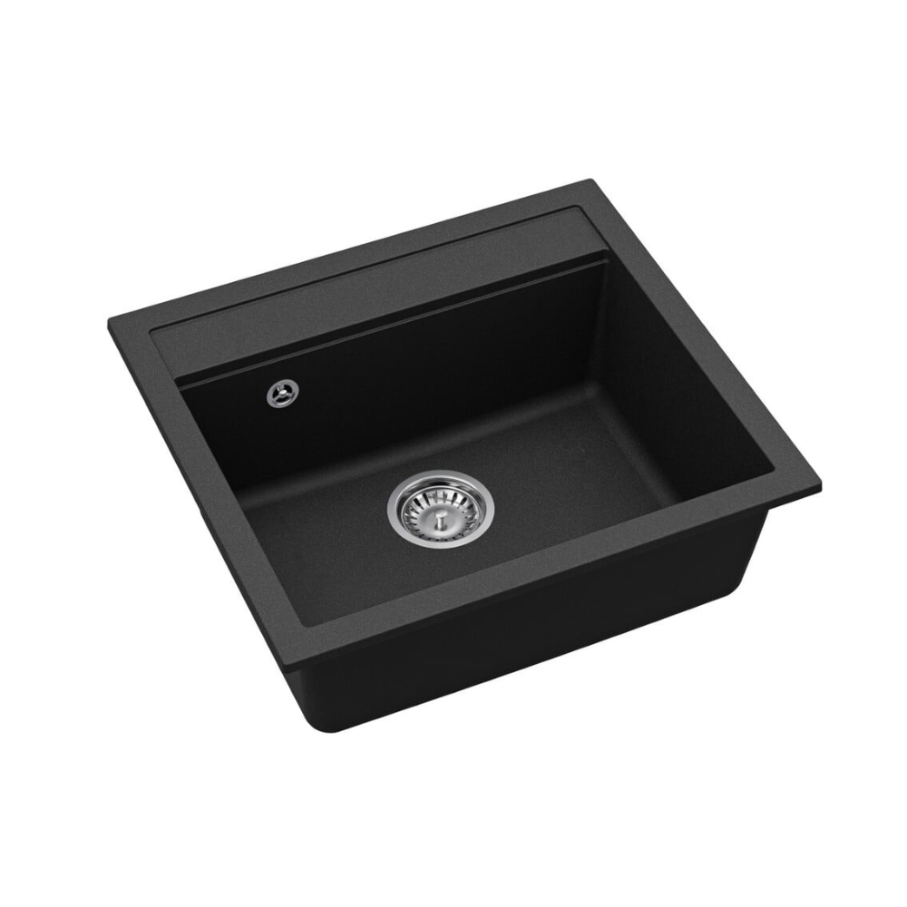 Caractéristiques de l'Evier 56,5x51cm en Granite, à encastrer, Noir (SATSINKGQQ100B) :