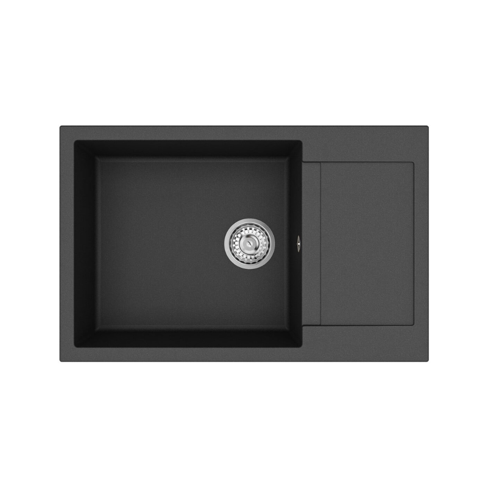 Caractéristiques de l'Evier 78x50 cm avec égouttoir réversible en Granite, à encastrer, Noir (SATSINKGQT105B) :