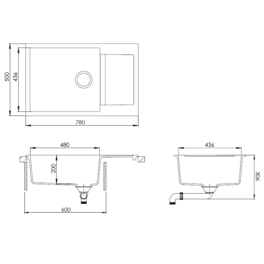 Caractéristiques de l'Evier 78x50 cm avec égouttoir réversible en Granite, à encastrer, Jasmin (SATSINKGQT105B) :