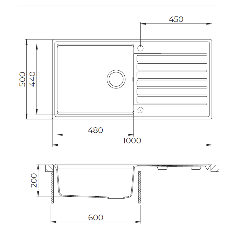 Caractéristiques de l'Evier 100x50 cm avec égouttoir réversible en Granite, à encastrer, Noir (SATSINKGQK103B) :