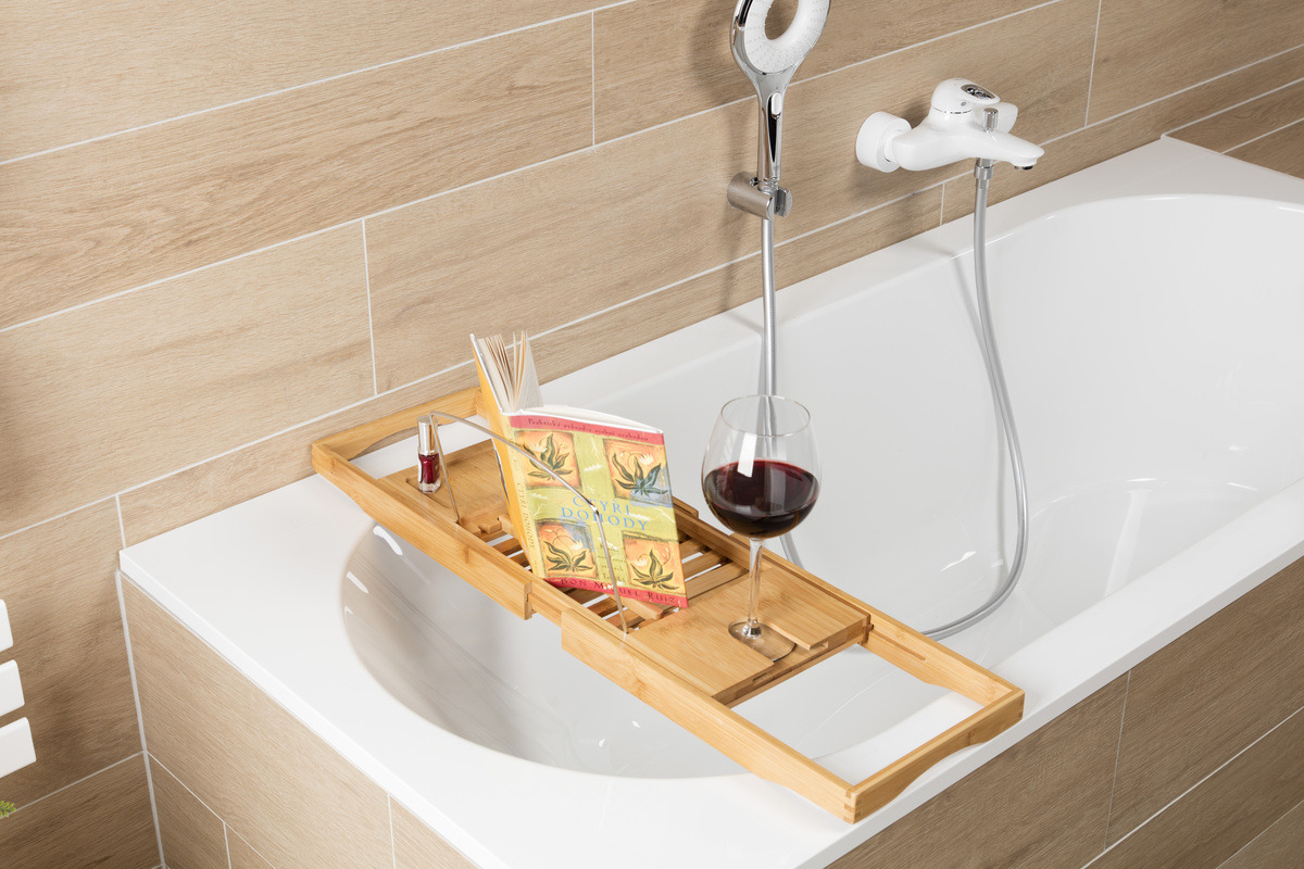 Un plateau de baignoire coulissante en 100% bambou est la solution parfaite pour profiter pleinement de son bain.