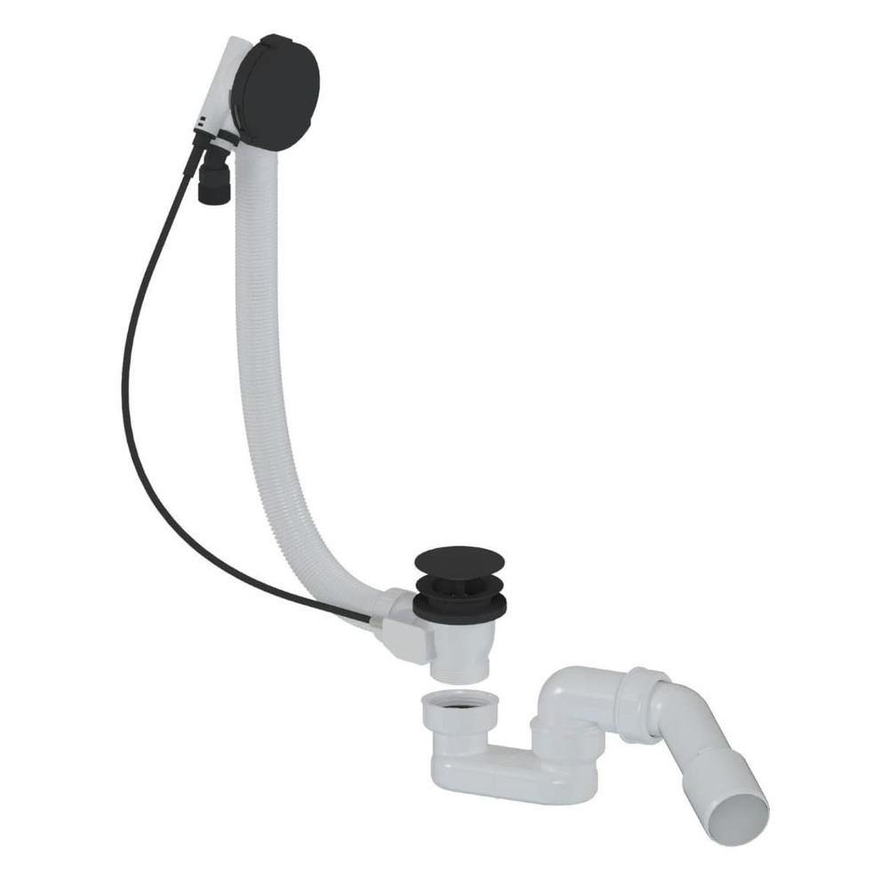 Système de vidage avec siphon, pour baignoires jusqu’à 80 cm d’entraxe. Finition noire mate, design moderne et fonctionnel.