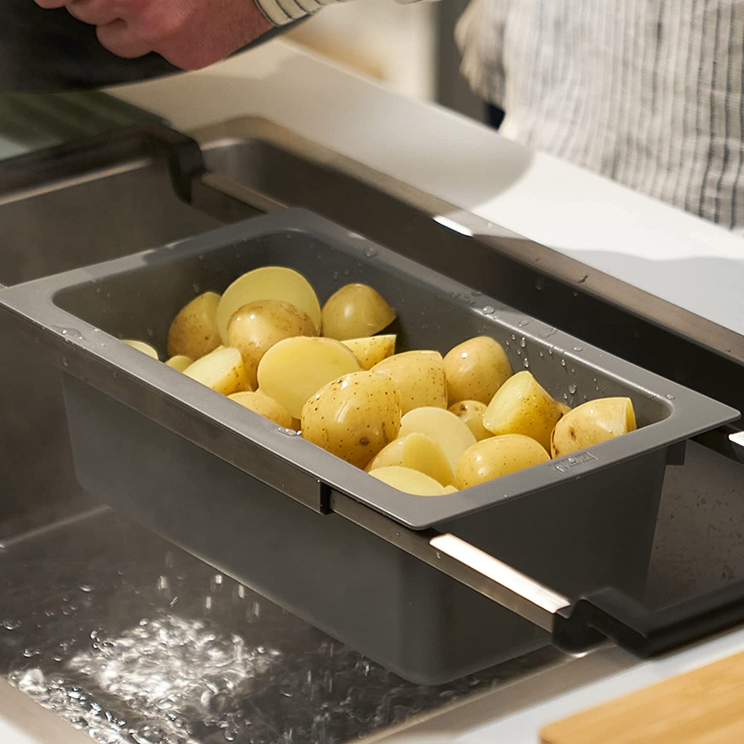 Franke ALL IN Set d'accessoires universel Planche à découper Bambou 32x20 + Panier égouttoir PVC Noir Sanitized (ALLINSET-1)