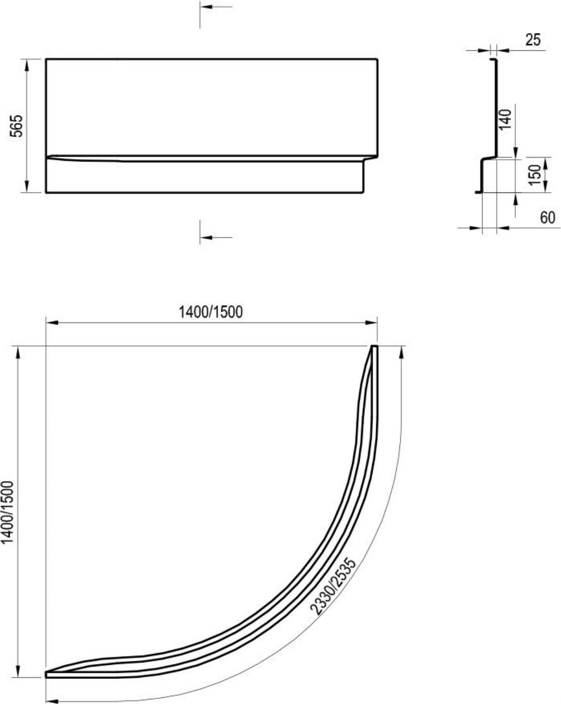 - Dimensions : 2330 x 565 mm