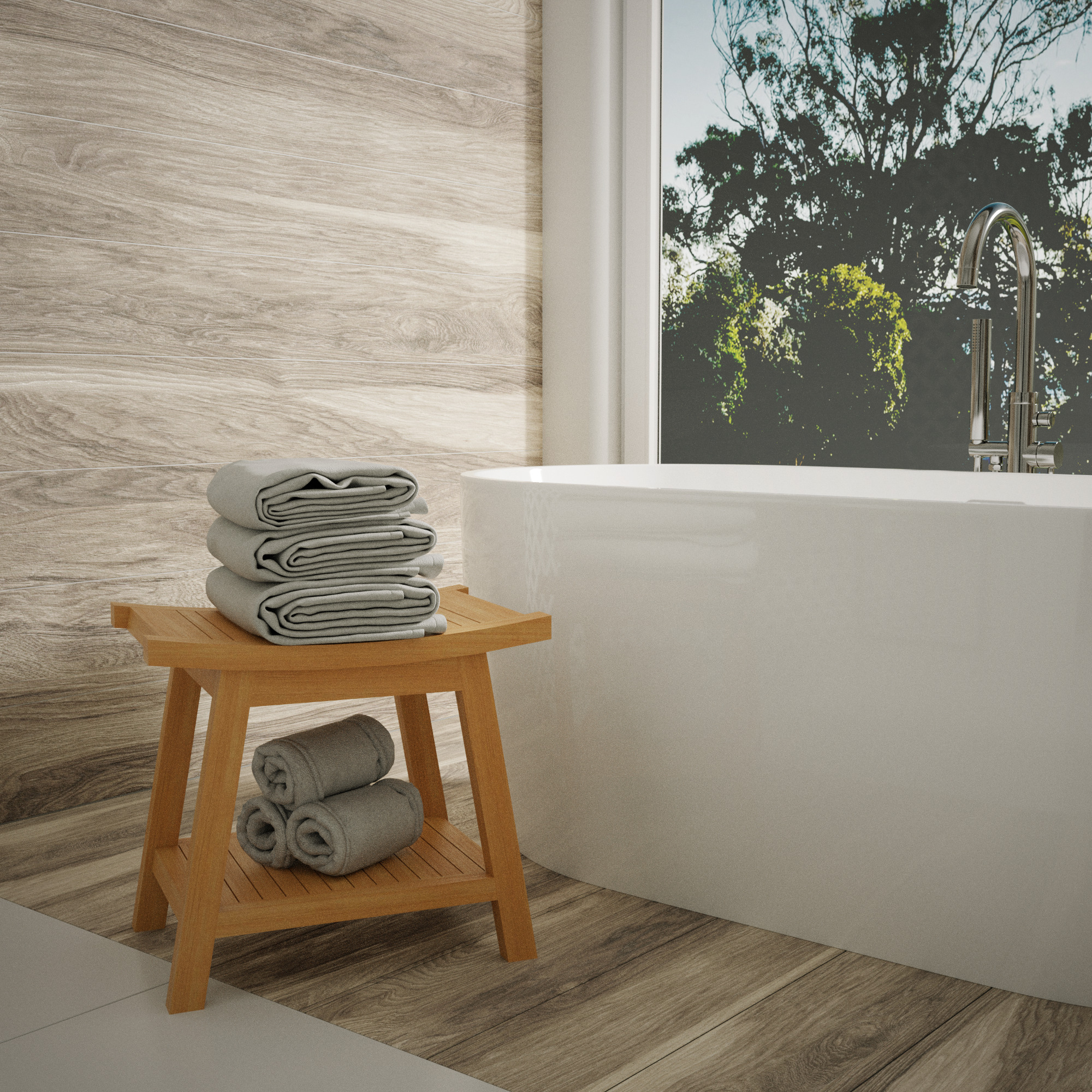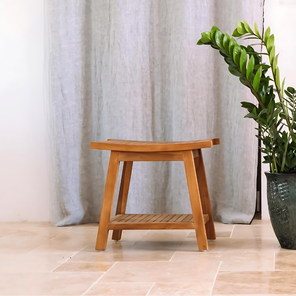 Tabouret de salle de bain en teck massif NATIFST50 – Élégance, durabilité et artisanat
