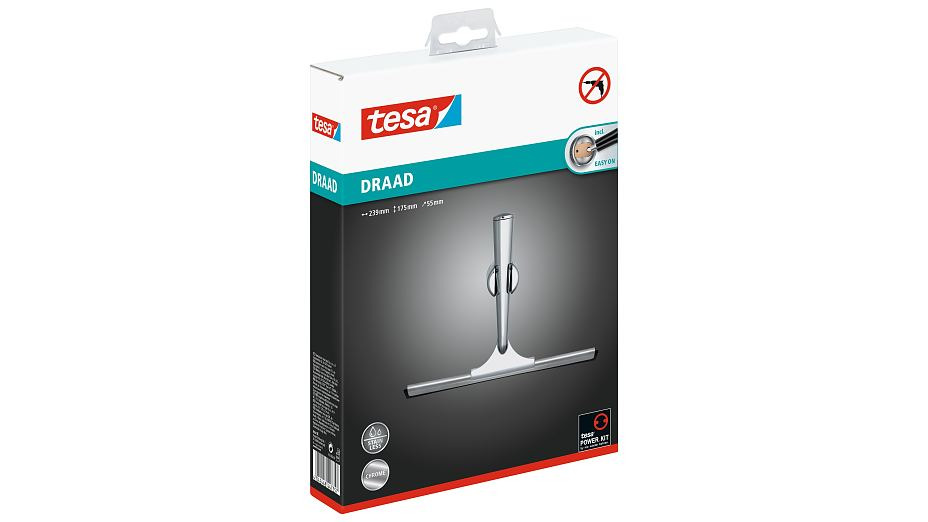 - Raclette de douche avec technologie brevetée tesa® Power.Kit (solution de fixation complète)