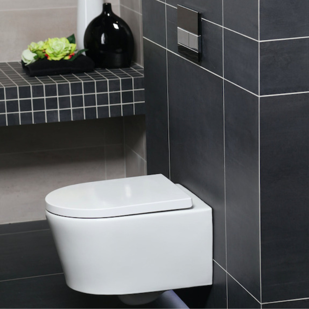 • Cuvette suspendue sans bride et fixations invisibles + abattant frein de chute (SATBRE010RREXP)