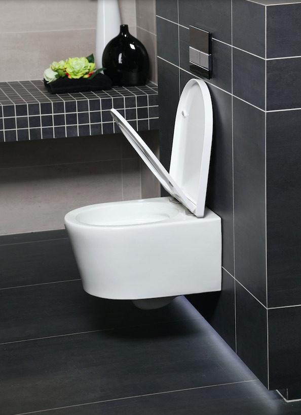 - Cuvette suspendue sans bride et fixations invisibles + abattant frein de chute (SATBRE010RREXP)
