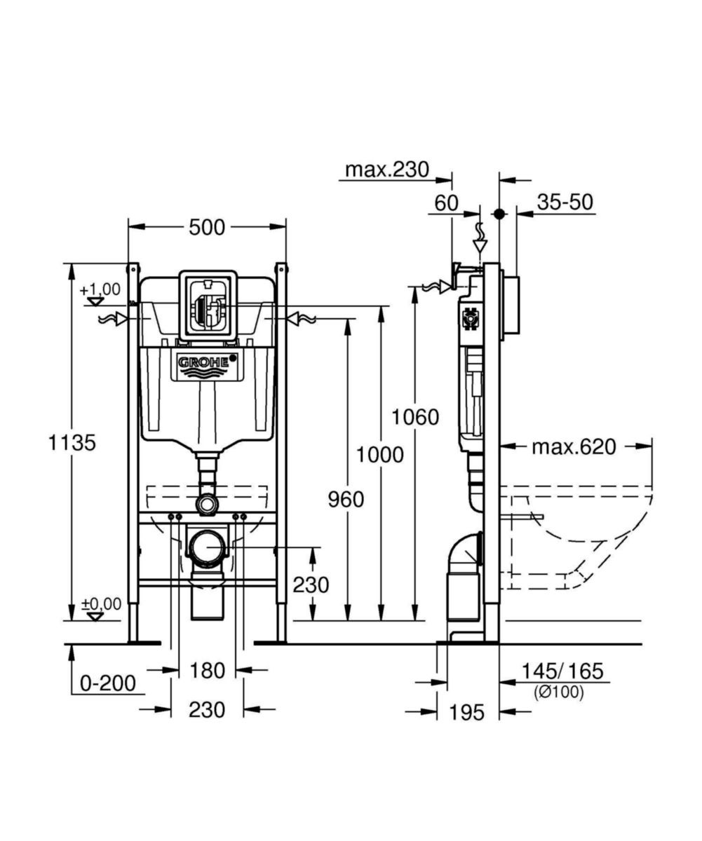 - Grohe RAPID SL Project bâti support autoportant pour WC, 1.13 M (39145000)