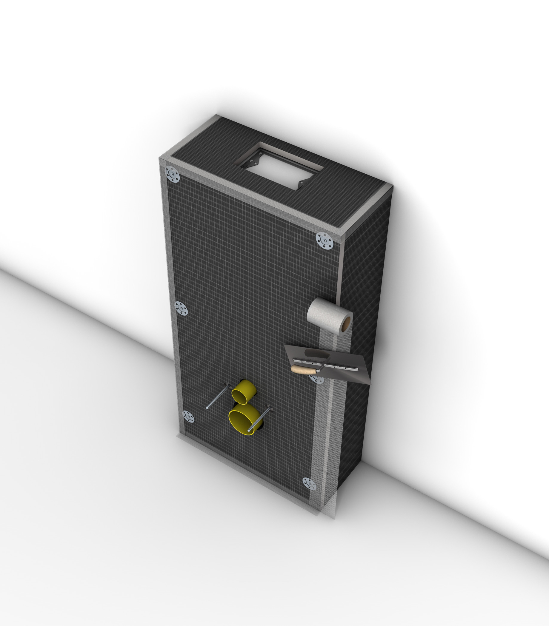 - Châssis en acier finition époxy pour cloison sèche, complètement pré-monté, livré avec connexions fixes (réglage rapide et verrouillage de la hauteur)