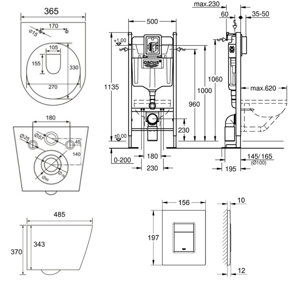 - Grohe RAPID SL Project bâti support autoportant pour WC, 1.13 M (39145000)