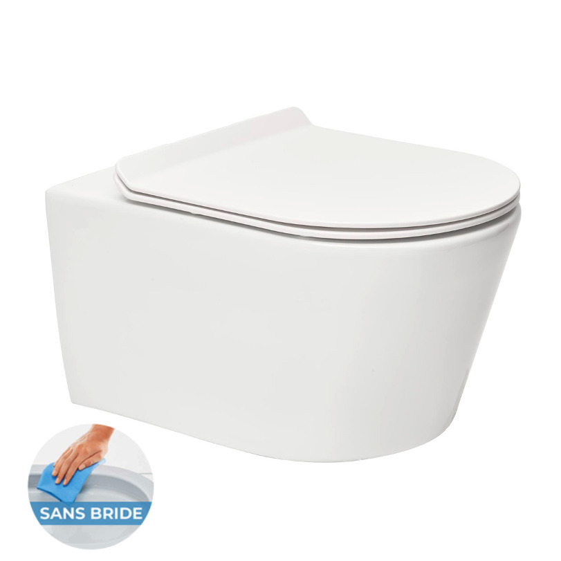Brevis WC suspendu sans bride, fixations invisibles + abattant ultra-fin, softclose (BrevisRimless)