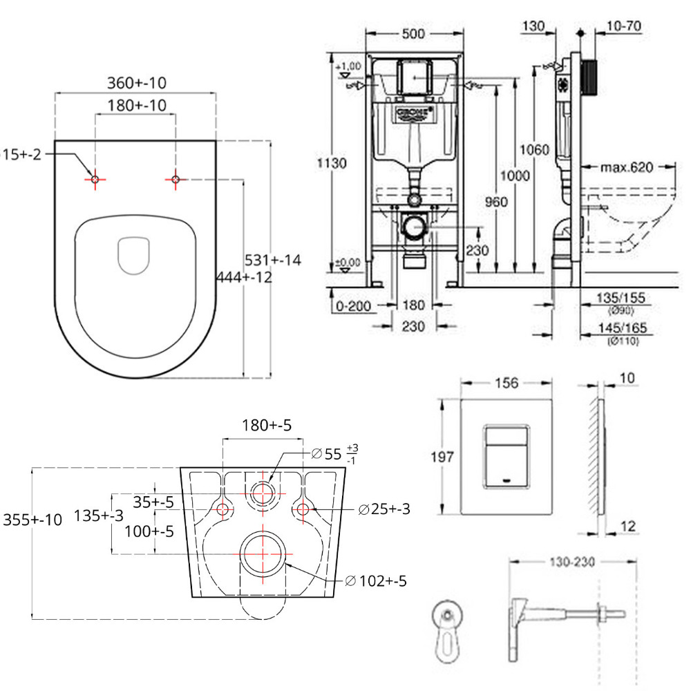 - Livré avec les tiges et écrous pour fixation de la cuvette WC, fixation céramique