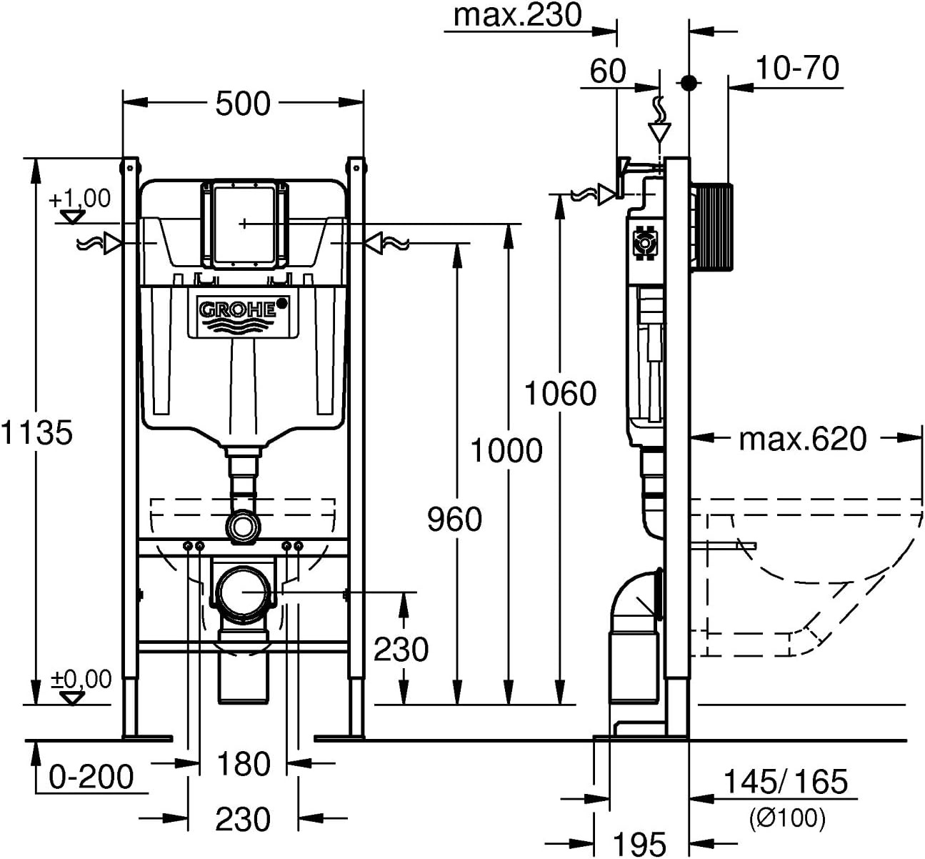 - Grohe RAPID SL Project bâti support autoportant pour WC, 1.13 M (39145000)