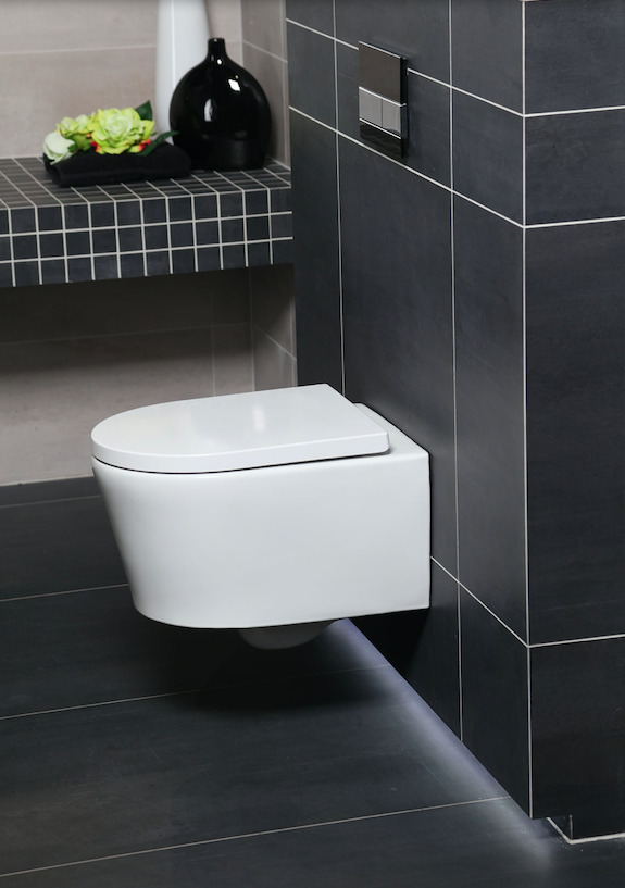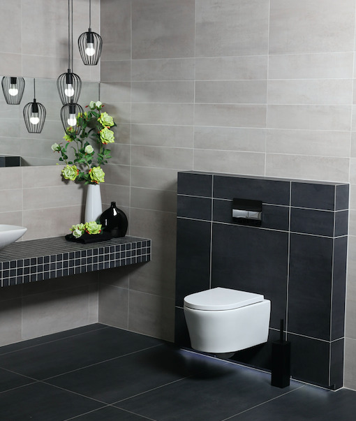 - Esthétique et Modernité: Donnez à votre salle de bains une allure contemporaine avec le design élégant de la cuvette suspendue SATrimless et du bâti-support Rapid SL en noir mat.