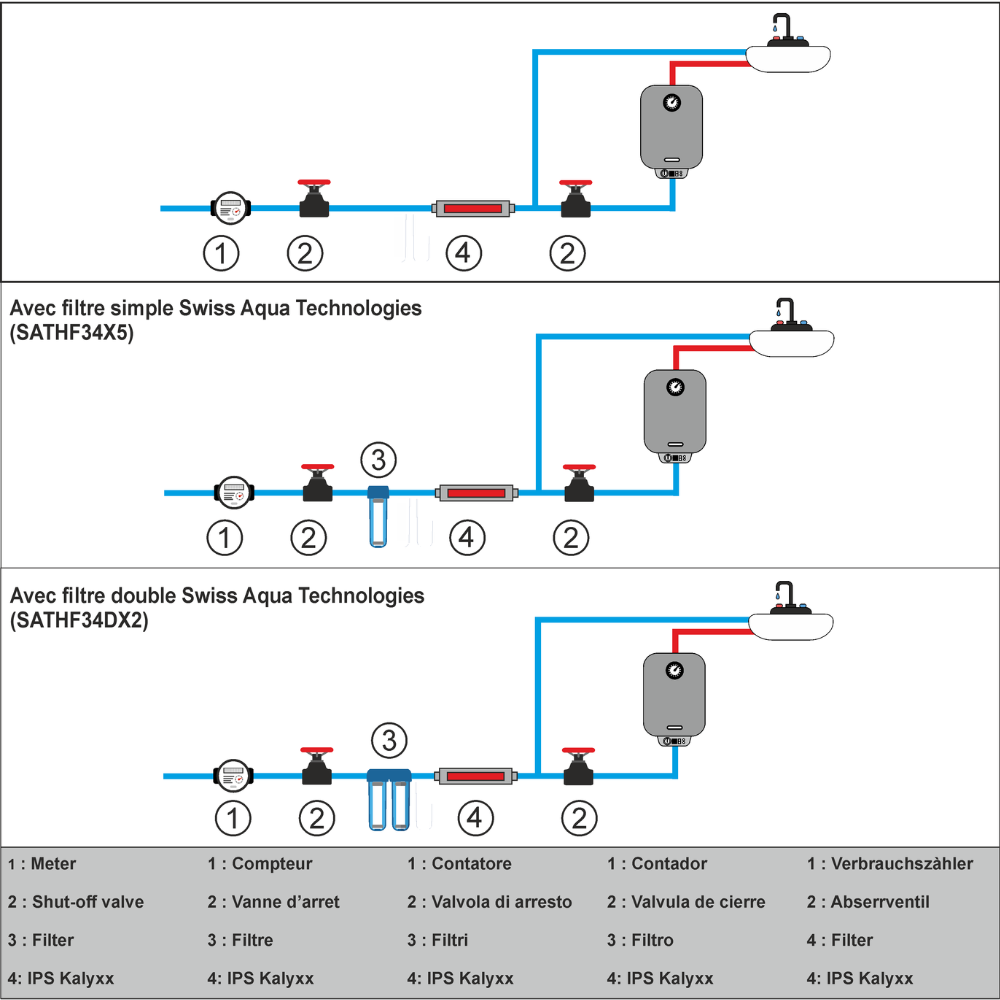 Caractéristiques de l'Adoucisseur d'eau Anticalcaire innovant IPS Kalyxx RedLine G 1/2 " femelle, Swiss Aqua Technologies (IPSKXRG12) :
