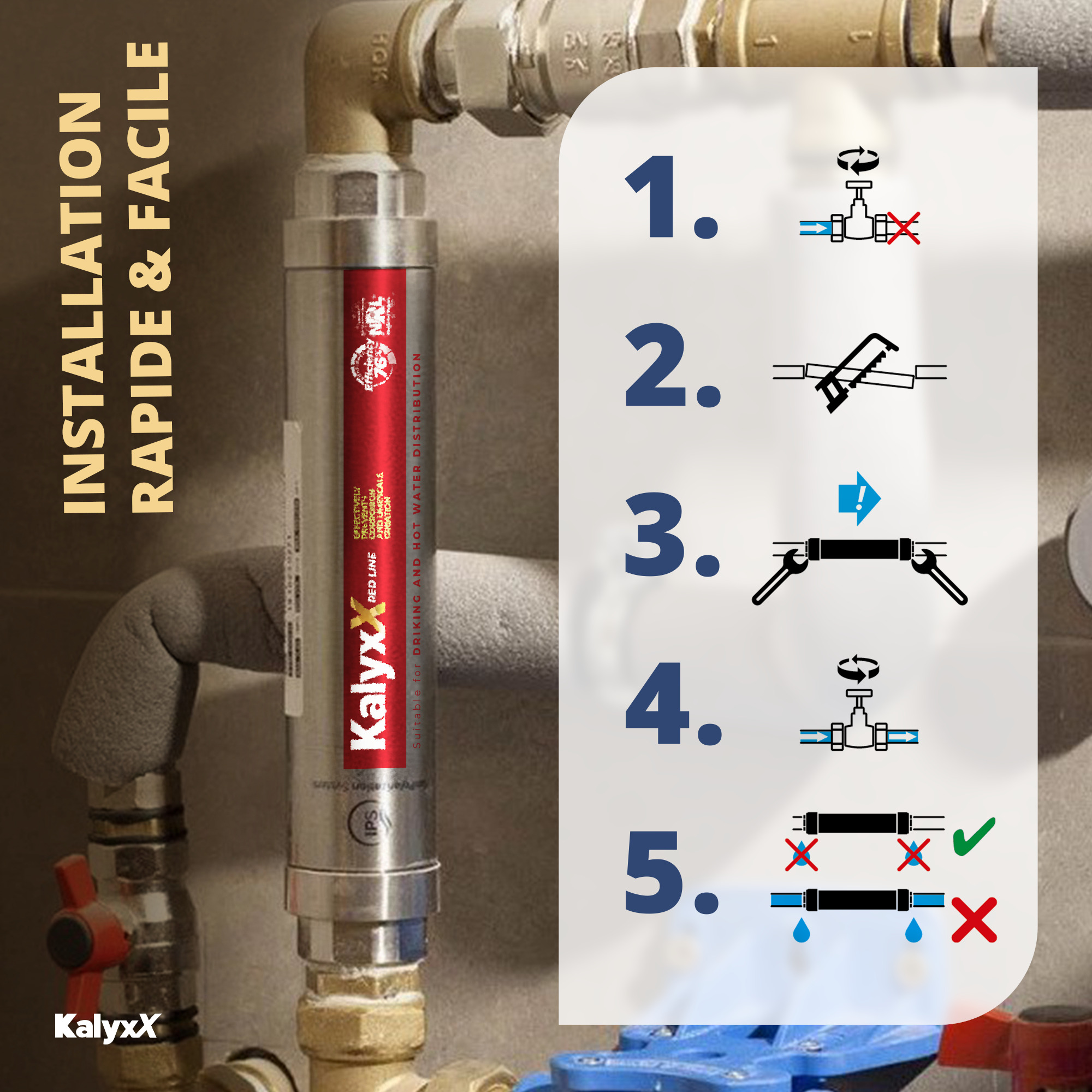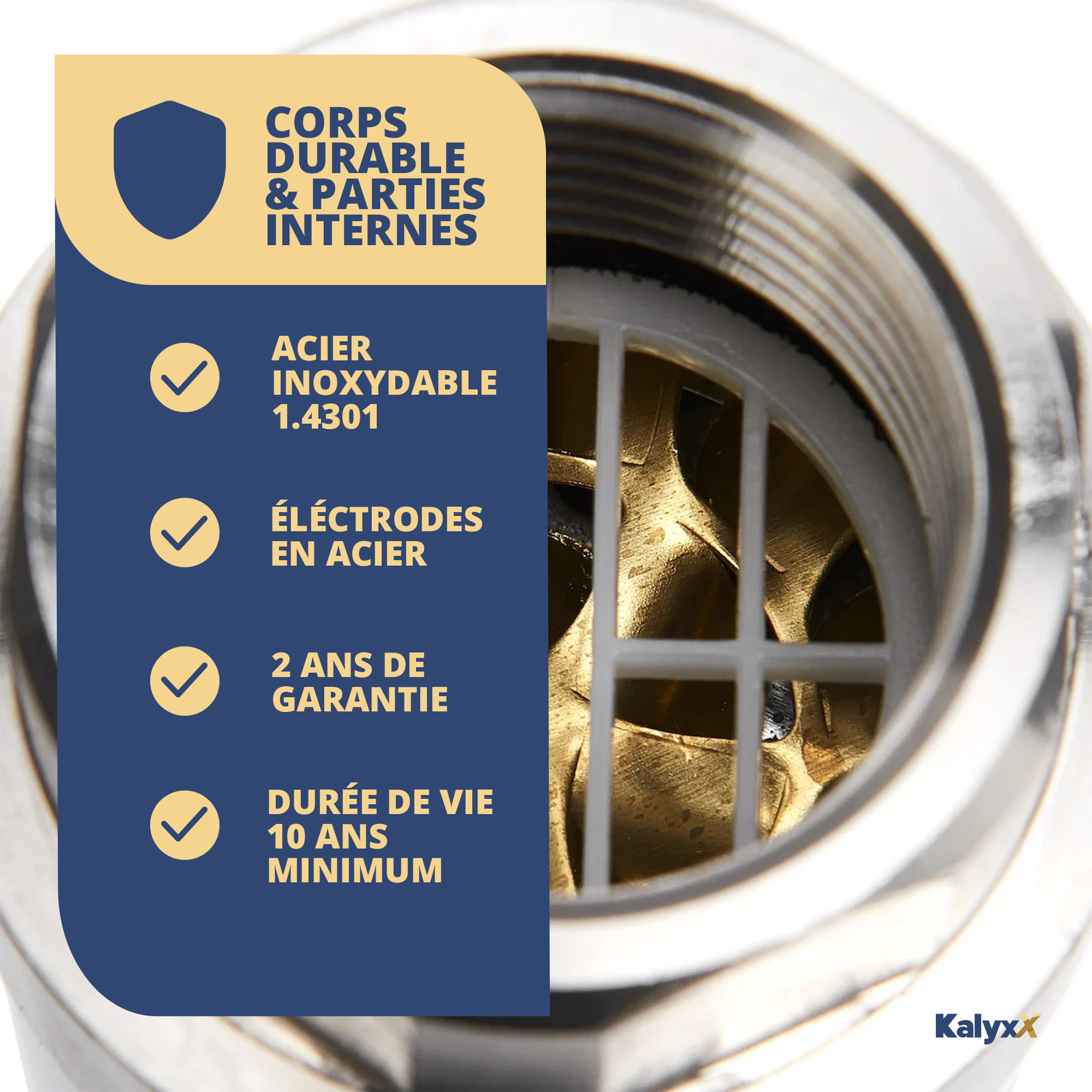 - Économique : Kalyxx est bien plus abordable qu'un adoucisseur à sel, dont les coûts varient entre 500 et 3000 €, avec des frais d'installation supplémentaires de 300 à 1200 €. De plus, il ne nécessite ni entretien ni consommables coûteux.