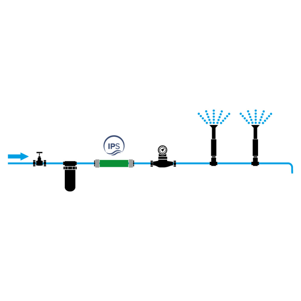 IPS Green Line est une version spécialement conçue pour les systèmes d’arrosage et d’irrigation. Ce modèle se fixe directement sur une vanne de jardin grâce à un filetage 3/4" et comporte une sortie compatible avec un raccord de tuyau standard 3/4" à l’autre extrémité.
