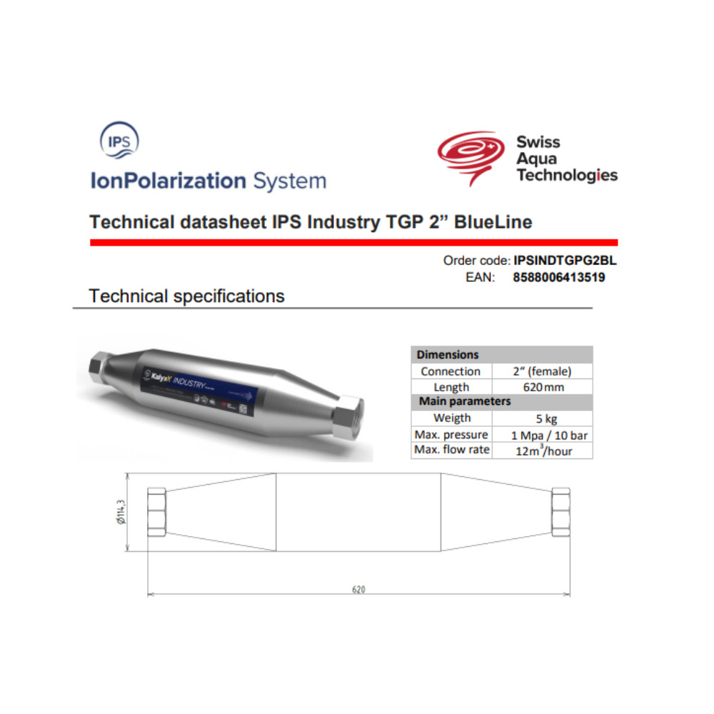 Caractéristiques de l'adoucisseur d'eau Industriel Anticalcaire Antibactérien innovant IPS Kalyxx BlueLine DN50 Swiss Aqua Technologies (IPSINBDN50) :