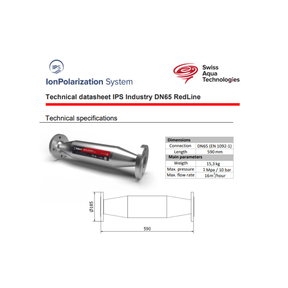 Caractéristiques de l'adoucisseur d'eau Industriel Anticalcaire Antibactérien innovant IPS Kalyxx RedLine DN65 Swiss Aqua Technologies (IPSINRDN65P) :