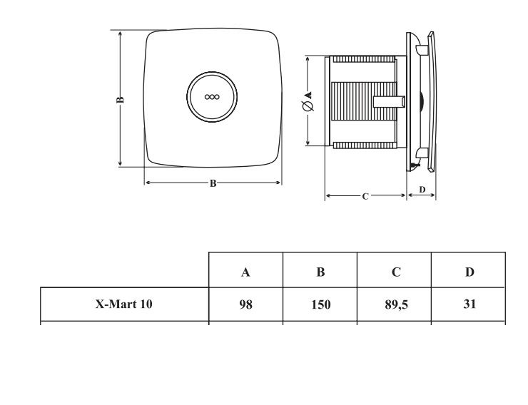 - Dimensions 150 x 150 x 89,5 mm