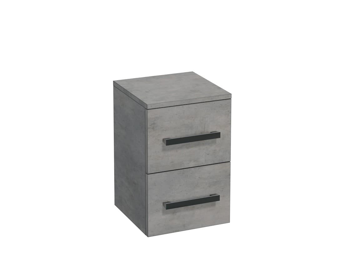 Meuble de salle de bain suspendu, bas en imitation béton, mesurant 32,5x51x33 cm. Surface stratifiée. Avec fermeture lente.