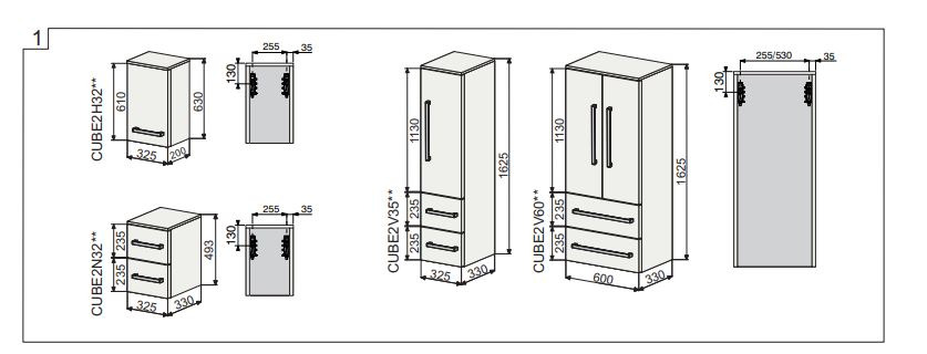 Naturel Meuble de salle de bain haut Naturel Cube Way 35x163x33 cm béton (CUBE2V35BE)