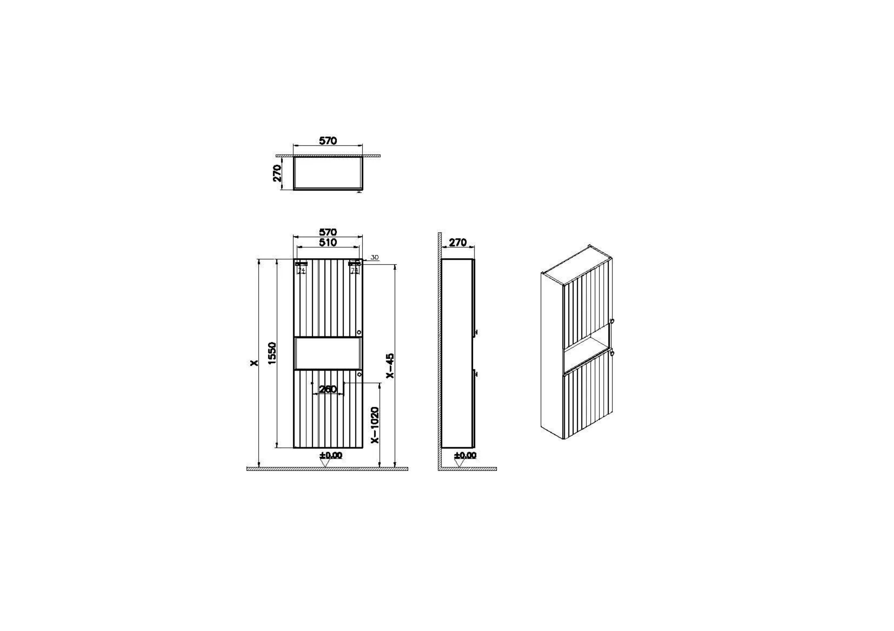 Avec des dimensions de 55 cm de largeur, 155 cm de hauteur et 25 cm de profondeur, ce meuble compact est idéal pour optimiser l’espace dans les petites salles de bain, tout en offrant un rangement fonctionnel. Vous pouvez consulter les dimensions détaillées sur la photo.