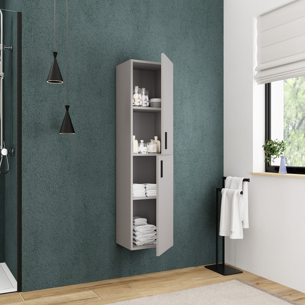 Ceramia NOUVEAU: Armoire colonne de salle de bain déjà assemblé, certifié FSC, gris perle (CERAMIA-4LG35)