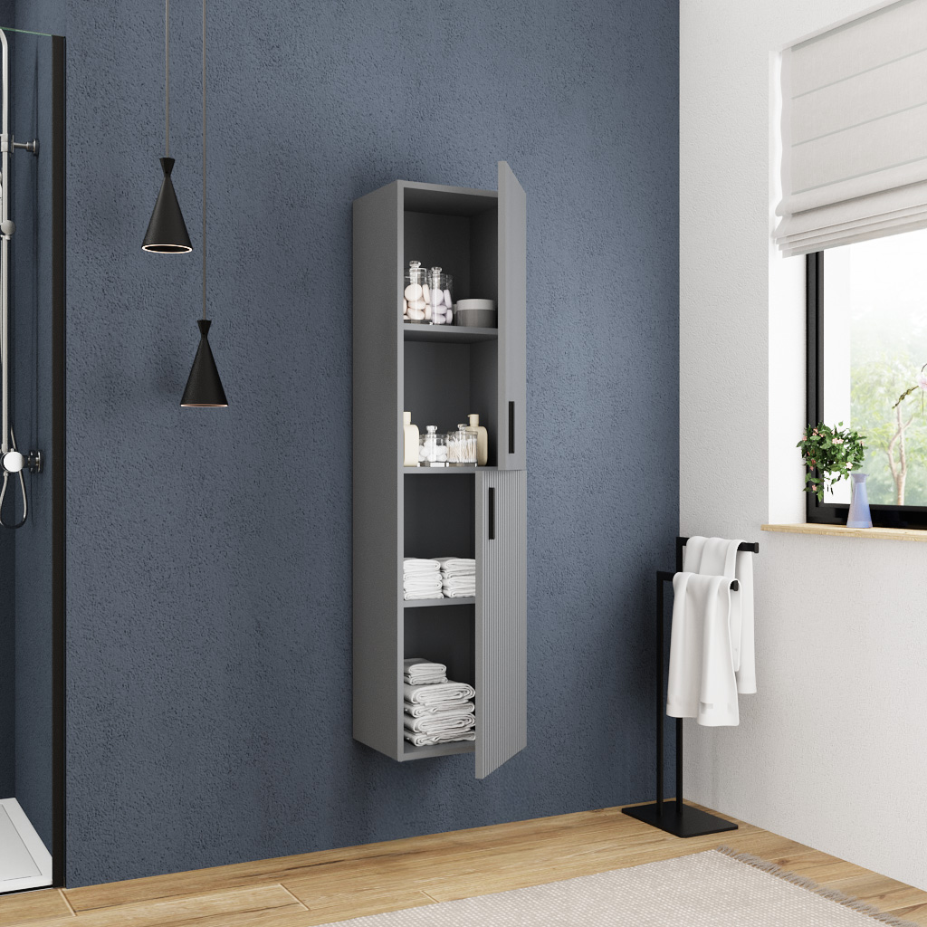 Ceramia Nouveau meuble colonne de salle de bain assemblé, certifié FSC, gris foncé (CERAMIA-4DG35)