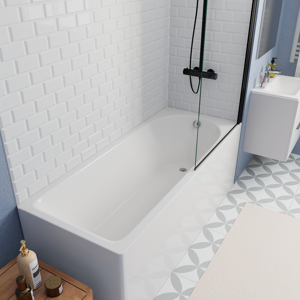 Contenu de l'ensemble baignoire 170x70 cm Eurowa universelle + Pare baignoire pivotant noir + pieds (KW312-SETP5):