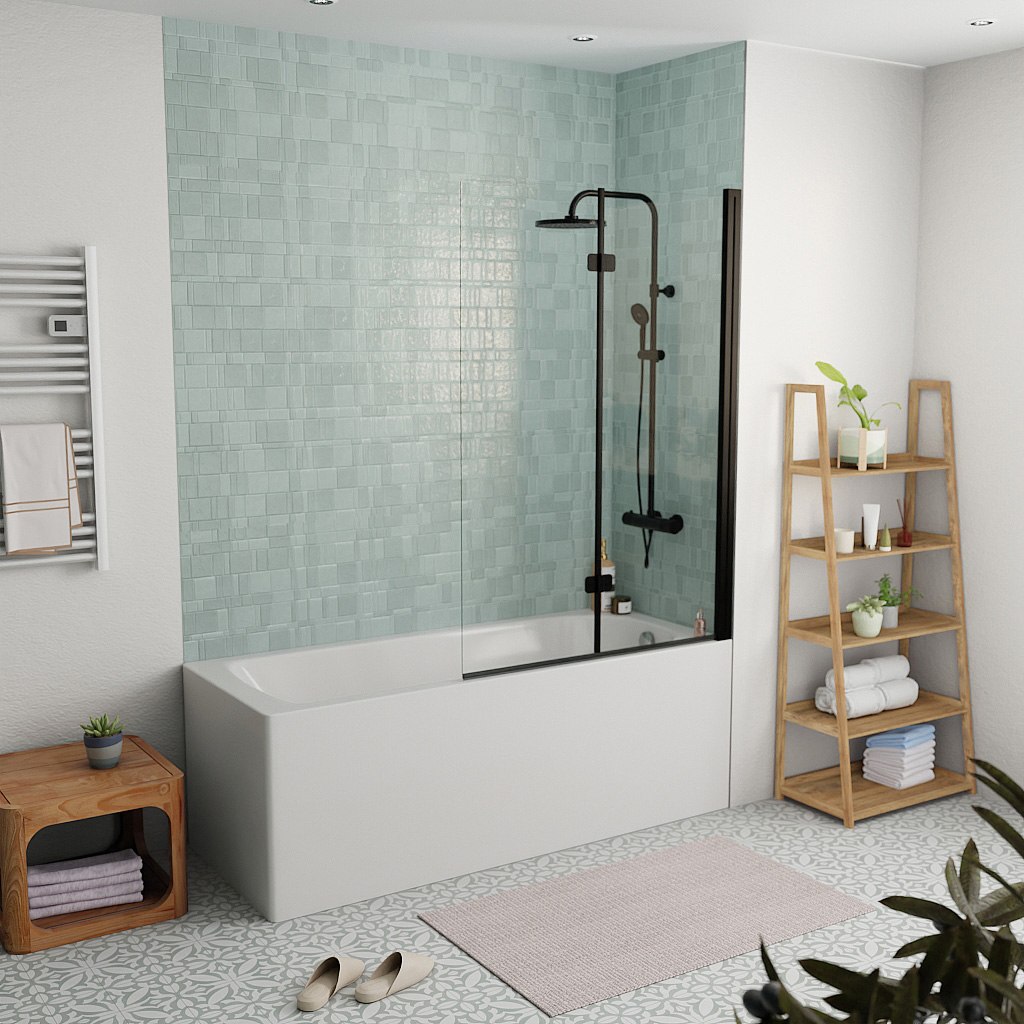 Swiss Aqua Technologies Pare-baignoire pliable, 2 parties, en verre, 150x105cm, Noir (SATVZSKNEW105C):