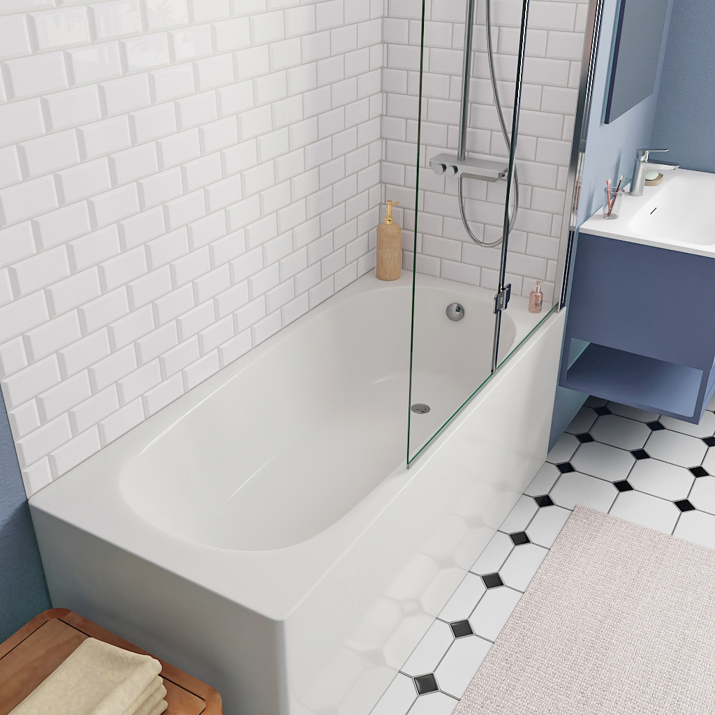 KOLO by Geberit 160x70 cm Ensemble baignoire Opal Plus universelle +Pare baignoire pliable, 2 volets chrome + pieds (XWP1260000-SETP2)