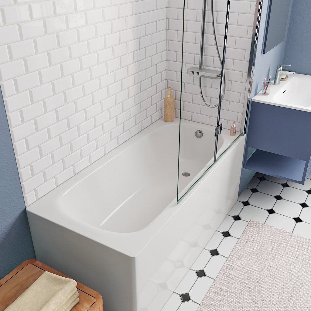 - Swiss Aqua Technologies By Kaldewei Vivien 150 x 70 cm Baignoire gain de place 82 L en acier émaillé, Blanc (SATVIVI150)