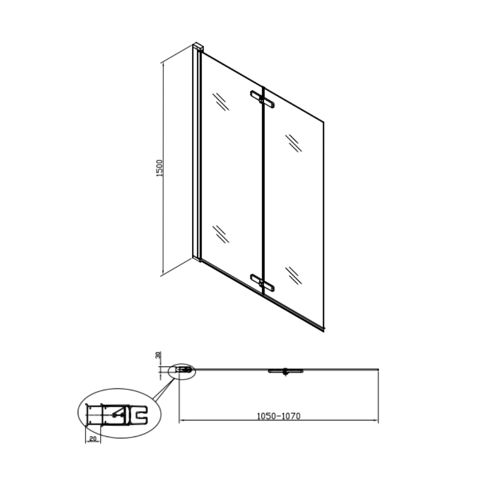 - Swiss Aqua Technologies Pare-baignoire pliable, 2 parties, en verre, 150x105cm, Chrome (SATVZSKNEW105)