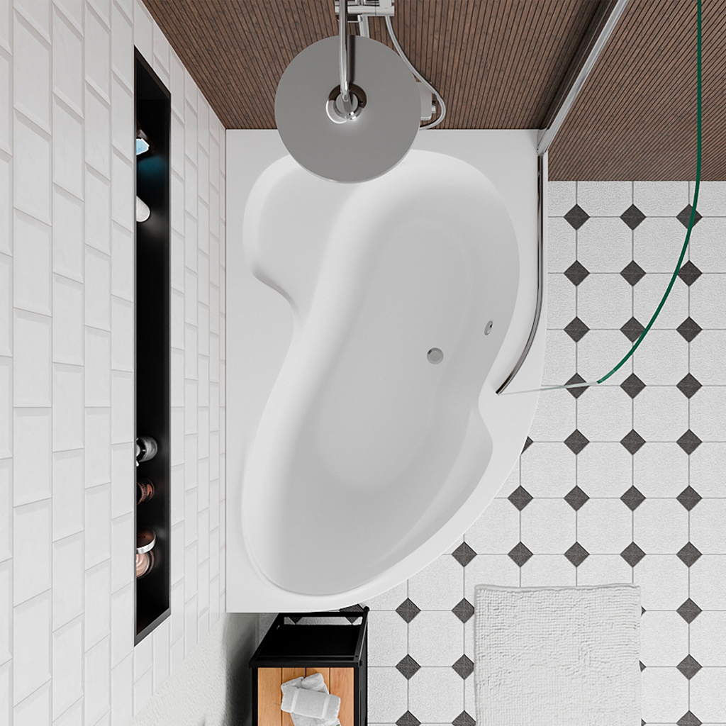 - Siko Laguna Fortuna Plus 150x100 cm Baignoire asymétrique en acrylique, droite, Blanc (FO1500PPLUS)