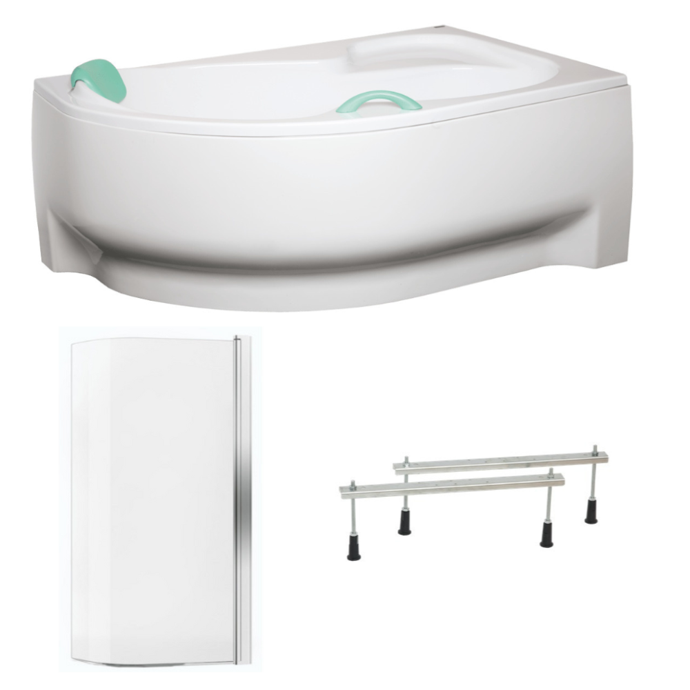 Siko 160x100 cm Fortuna Plus baignoire d'angle en acrylique, gauche + tablier + pare-baignoire, pieds, blanc (FO1600LPLUS-SETP1)