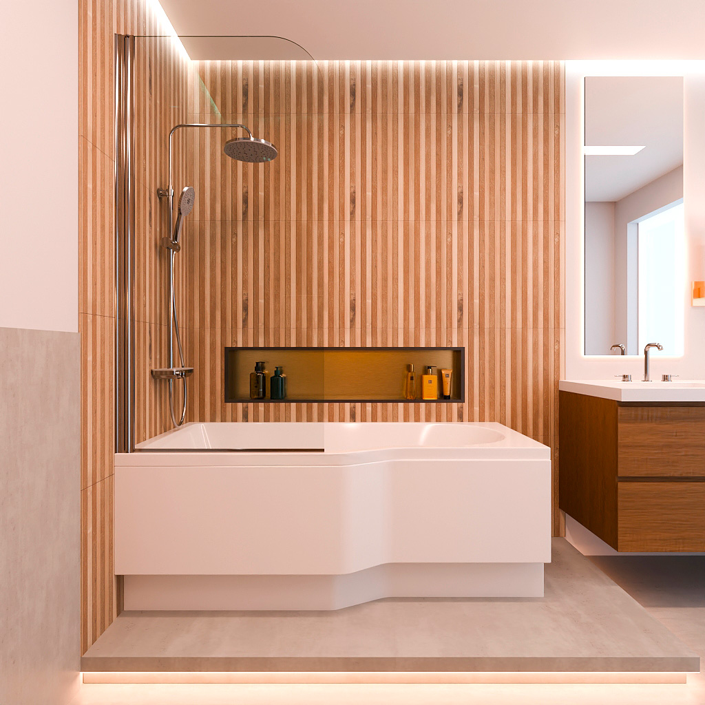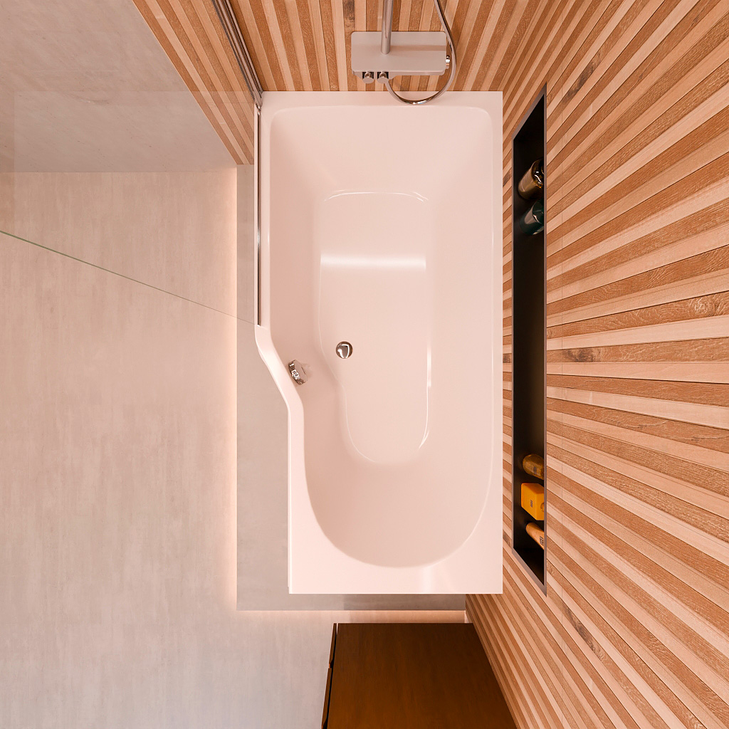 - Type de produit:Baignoire bain/douche asymétrique avec tablier, pare-baignoire et pieds