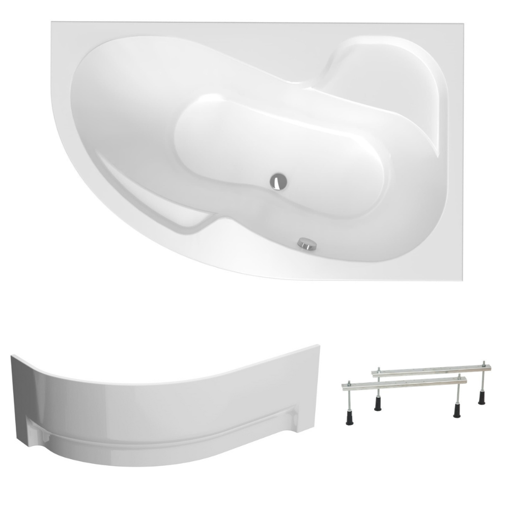 Siko 170x100 cm Laguna Fortuna Plus baignoire asymétrique en acrylique, droite + tablier 170 cm + pieds, blanc (FO1700PPLUS-SET1)