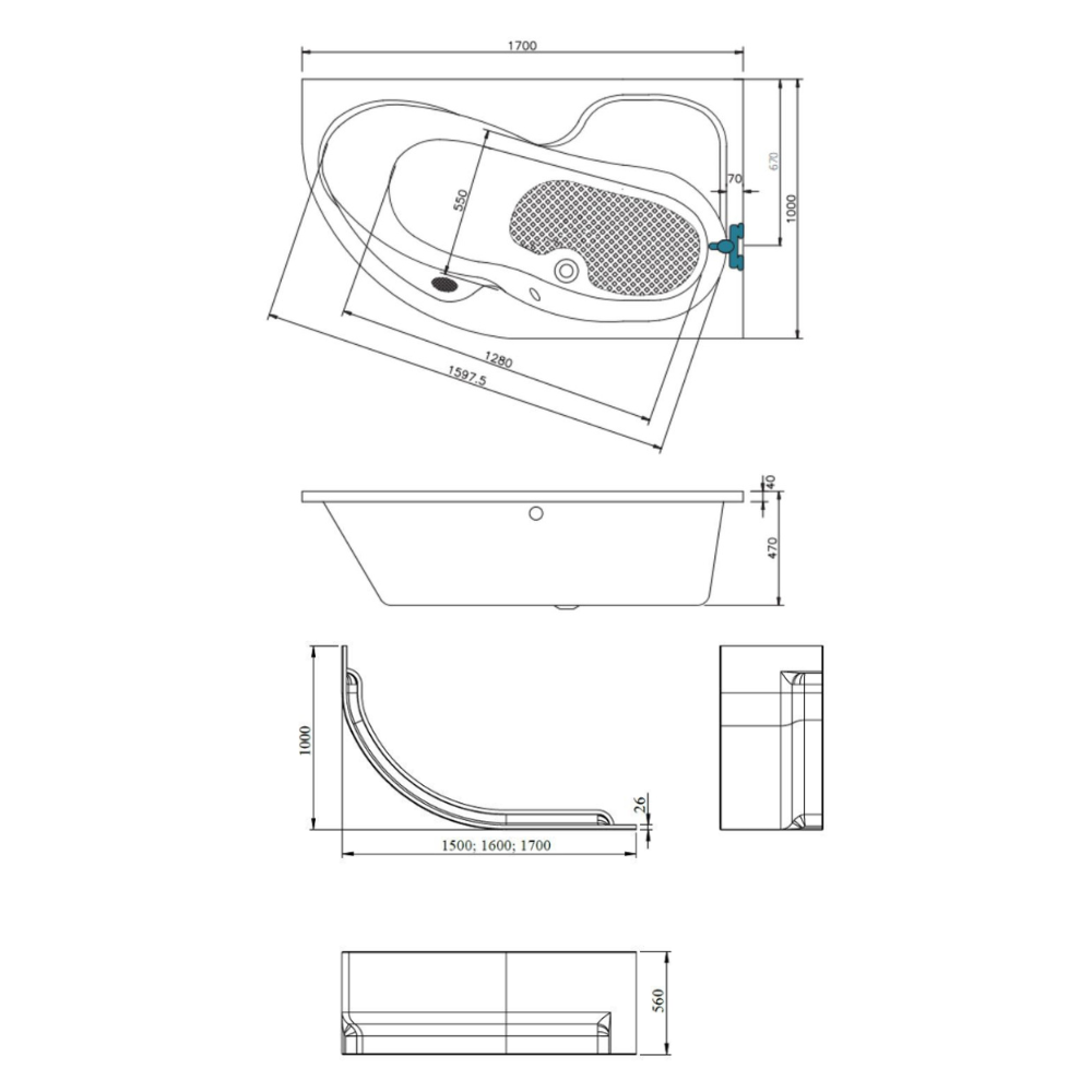 • Type de baignoire:Asymétrique